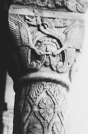 Bild 25 Goslar: Das Physis-Schema wird hier von den Formen zweier Drachen gebildet, deren Hälse am Kapitellort einander umschlingen. Die Volutenorte sind von den Flügeln der Drachen besetzt.
